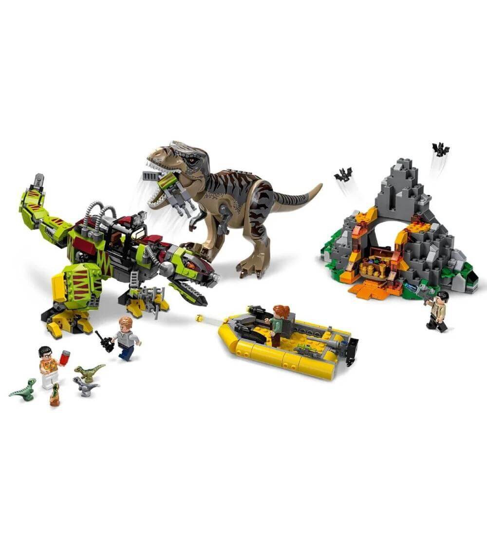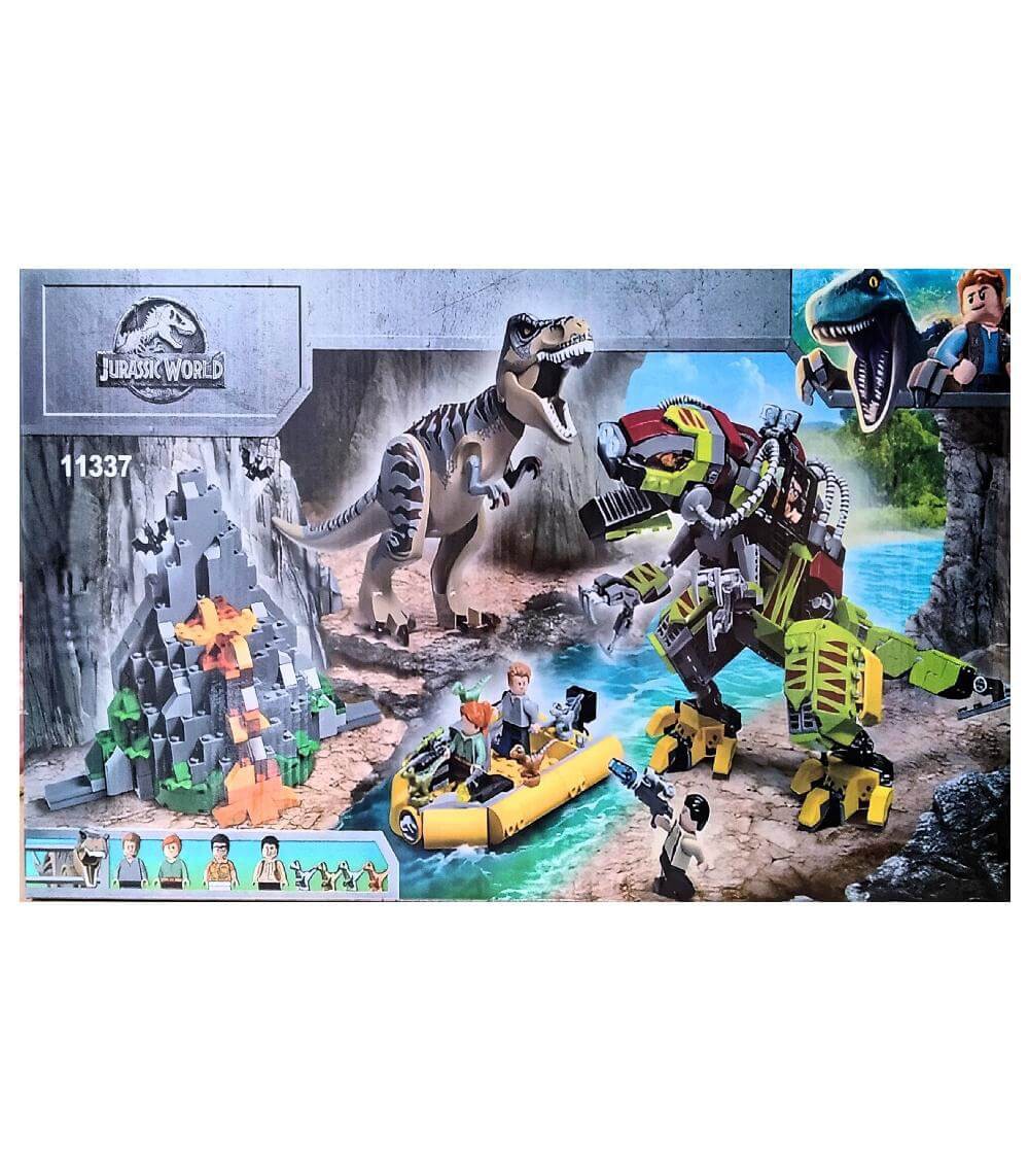 Конструктор "Битва Ти-Рекса с роботом динозавром" 11337 состоит из 740 деталей и позволяет собрать Ти-рекса, робота-динозавра, мини-фигурки, лодку и пещеру. Полная копия набора Lego 75938 и совместимость с игрушками бренда.