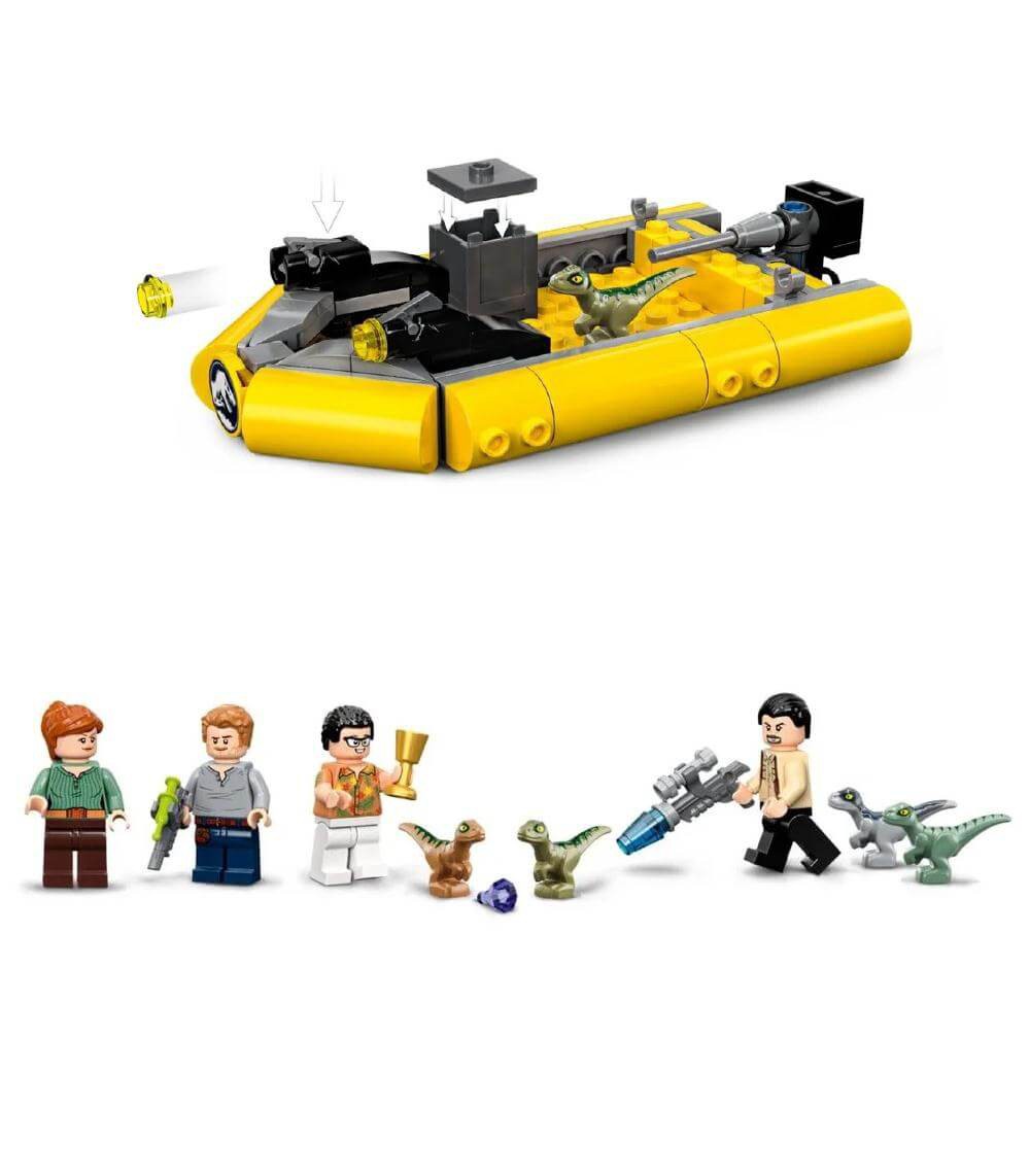 Набор обеспечивает захватывающий игровой процесс с возможностью устраивать сражения динозавров, использовать лодку с шутером и закрывающуюся пещеру для сюрпризов.