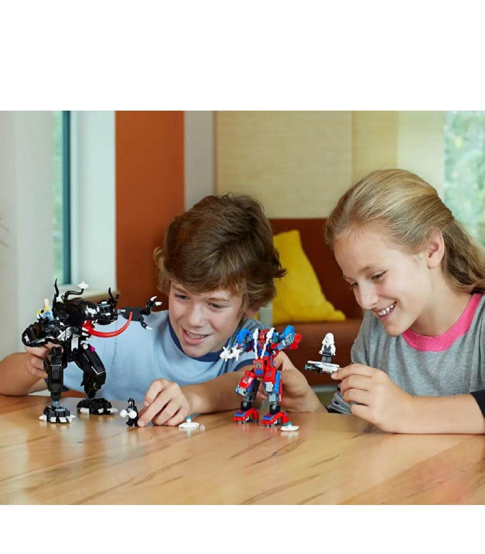 В наборе есть аксессуары — например, кусочек мороженого Мэй и декоративные детали. Размеры моделей: Робот-паук: высота 14 см, длина 11 см, ширина 4 см. Робот Веном: высота 22 см, длина 18 см, ширина 8 см. Минифигурки Человека-Паука, Венома и Мэй впервые появились в декабре 2018 года. Этот конструктор совместим с большинством других наборов LEGO, давая возможность создавать свои уникальные истории о супергероях! Это не просто игрушка — целый мир Marvel, который ребёнок может собрать и оживить своими руками!