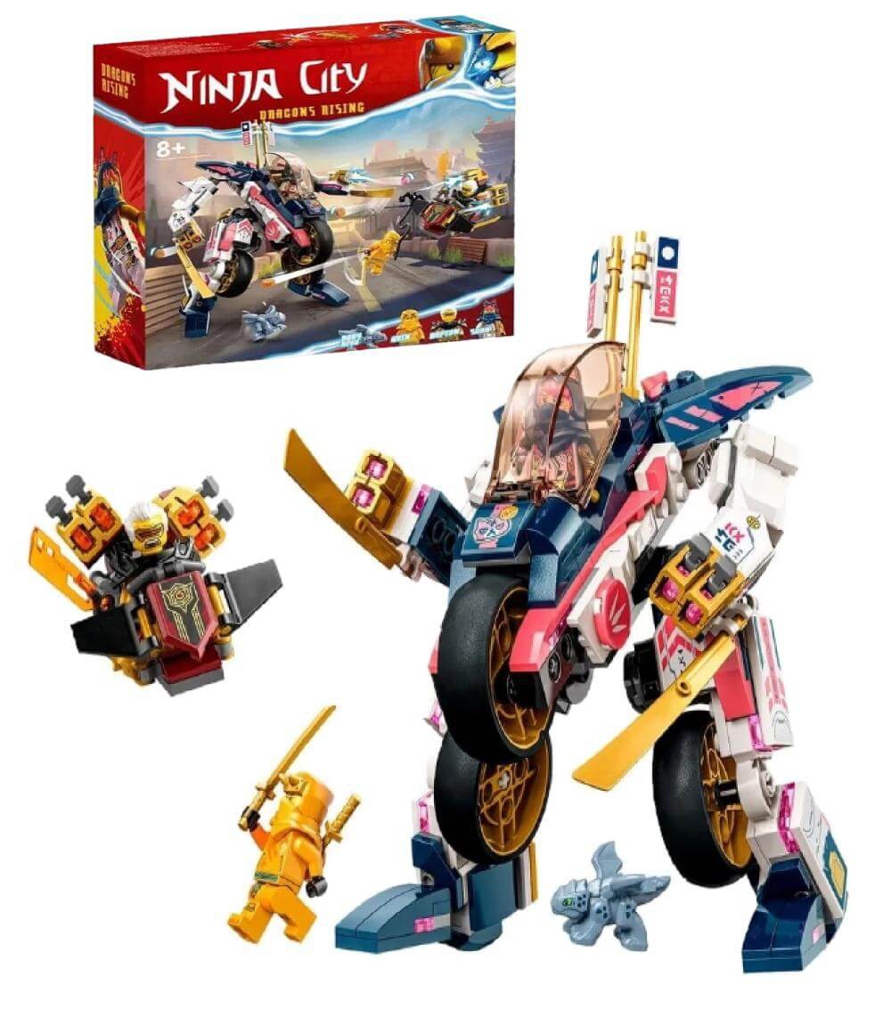 Конструктор Ninjago Байк-трансформер Соры — динамичный игровой набор, созданный по мотивам популярной серии Ninjago. Из деталей набора можно собрать боевого робота, который трансформируется в байк для участия в сражениях.