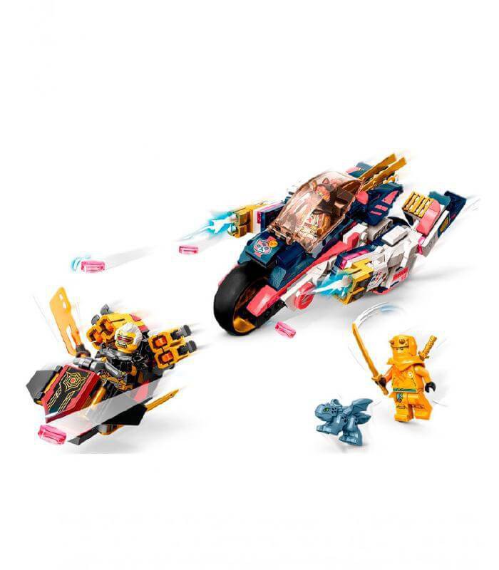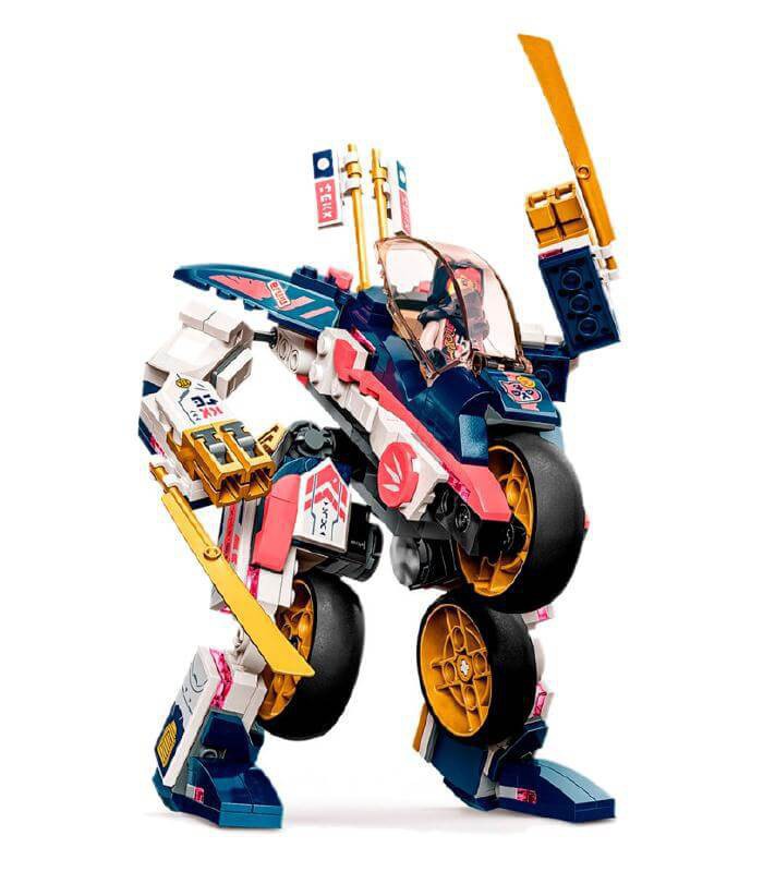 Робот и байк оснащены шипомётами и золотыми лезвиями, что делает игровой процесс более захватывающим. В комплект входят три минифигурки героев — Сора, Рэптон и Арин, а также фигурка дракона Бэби Рию.