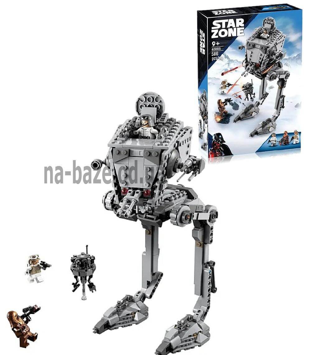 Детализированный набор «Шагоход AT-ST на Хоте» 65005 позволяет собрать легендарного шагохода Империи из фильма «Звёздные войны: Империя наносит ответный удар». Модель является полным аналогом LEGO 75322 и состоит из 586 деталей.