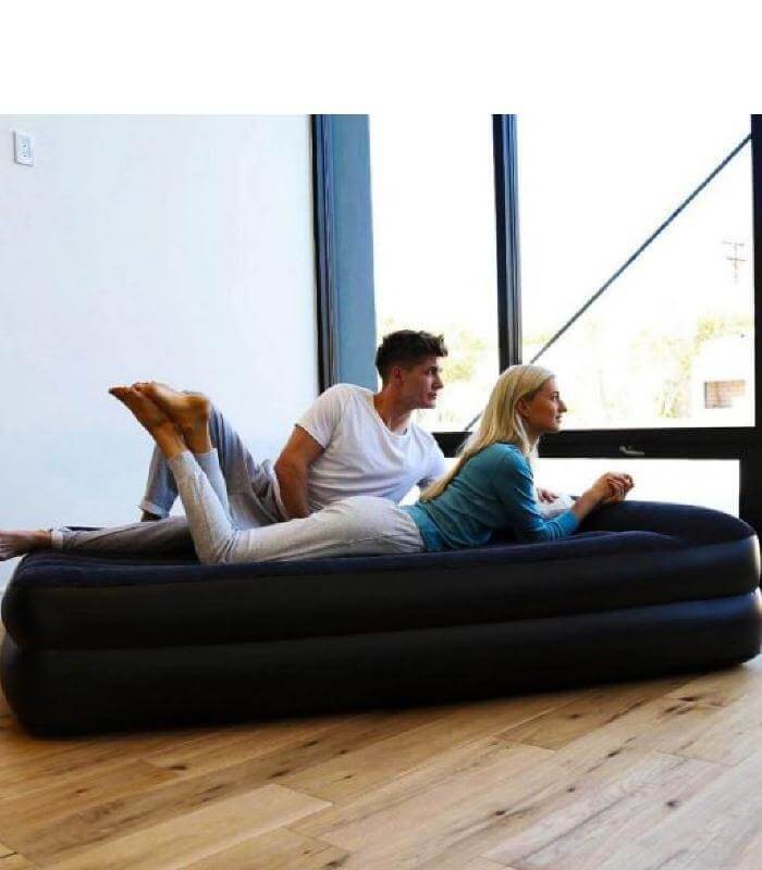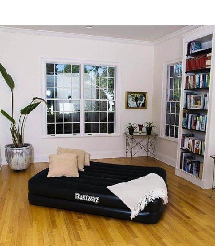 При отсутствии электросети изделие можно накачать обычным насосом или автомобильным компрессором через клапан. Велюровое покрытие спального места приятно на ощупь и предотвращает соскальзывание постельного белья.