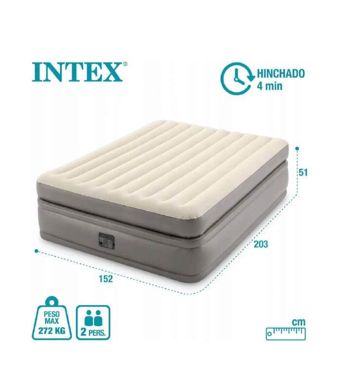 Надувная кровать Intex 64164 Prime Comfort Elevated — идеальный вариант для комфортного сна дома и во время поездок. Размер 203x152x36 см позволяет удобно разместиться двоим взрослым, обеспечивая простор и комфорт.