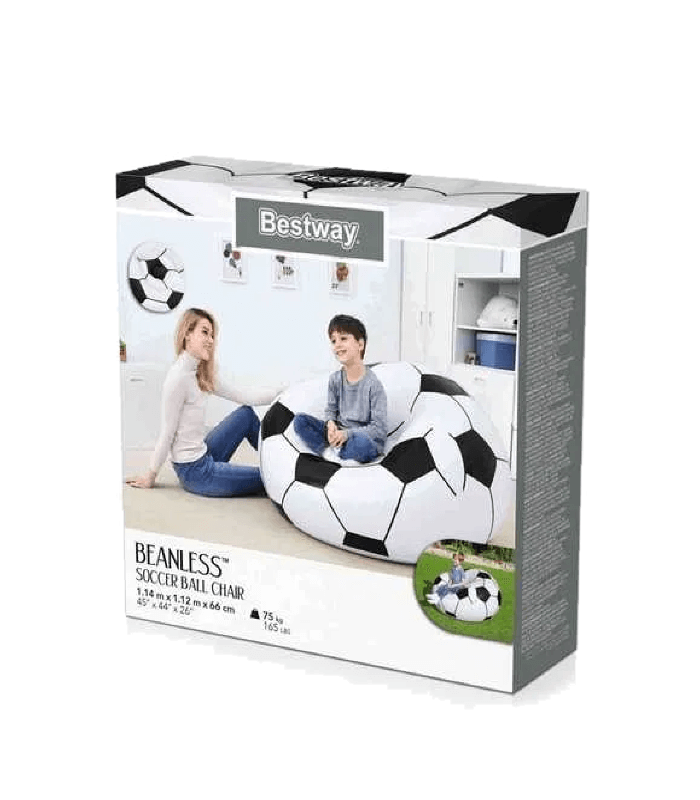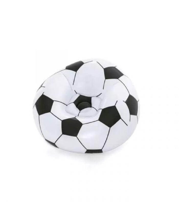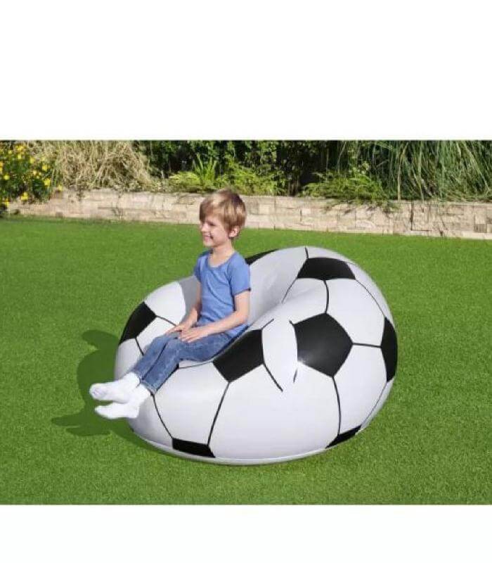 Надувное детское кресло Футбольный мяч Bestway 75010 — практичное и удобное решение для отдыха дома или на даче. Оригинальный дизайн в виде черно-белого футбольного мяча гармонично впишется в детскую комнату или игровую зону.